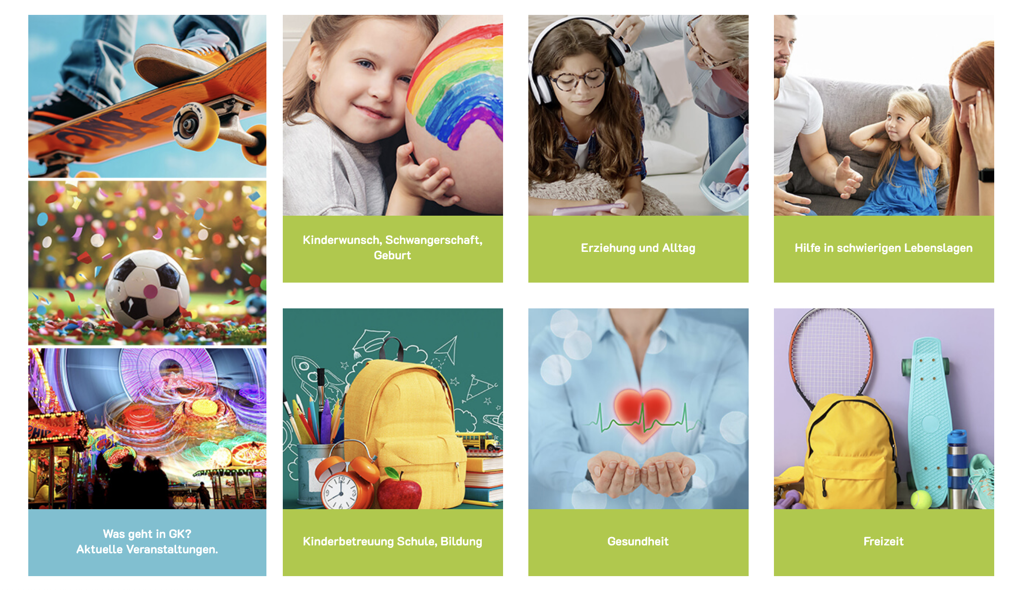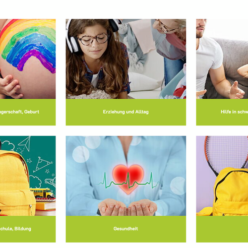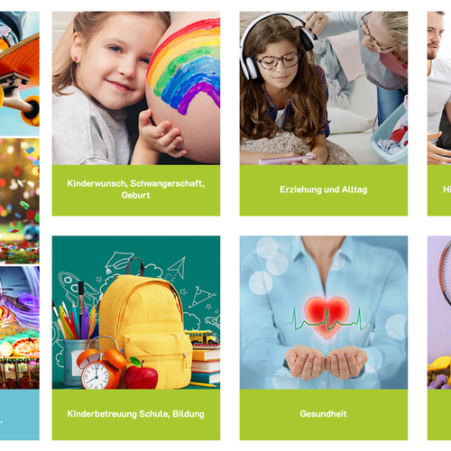 Inhaltsboxen gibt es in verschiedenen Designs. Die Boxen können mit Bildern, Icons oder beides sein.